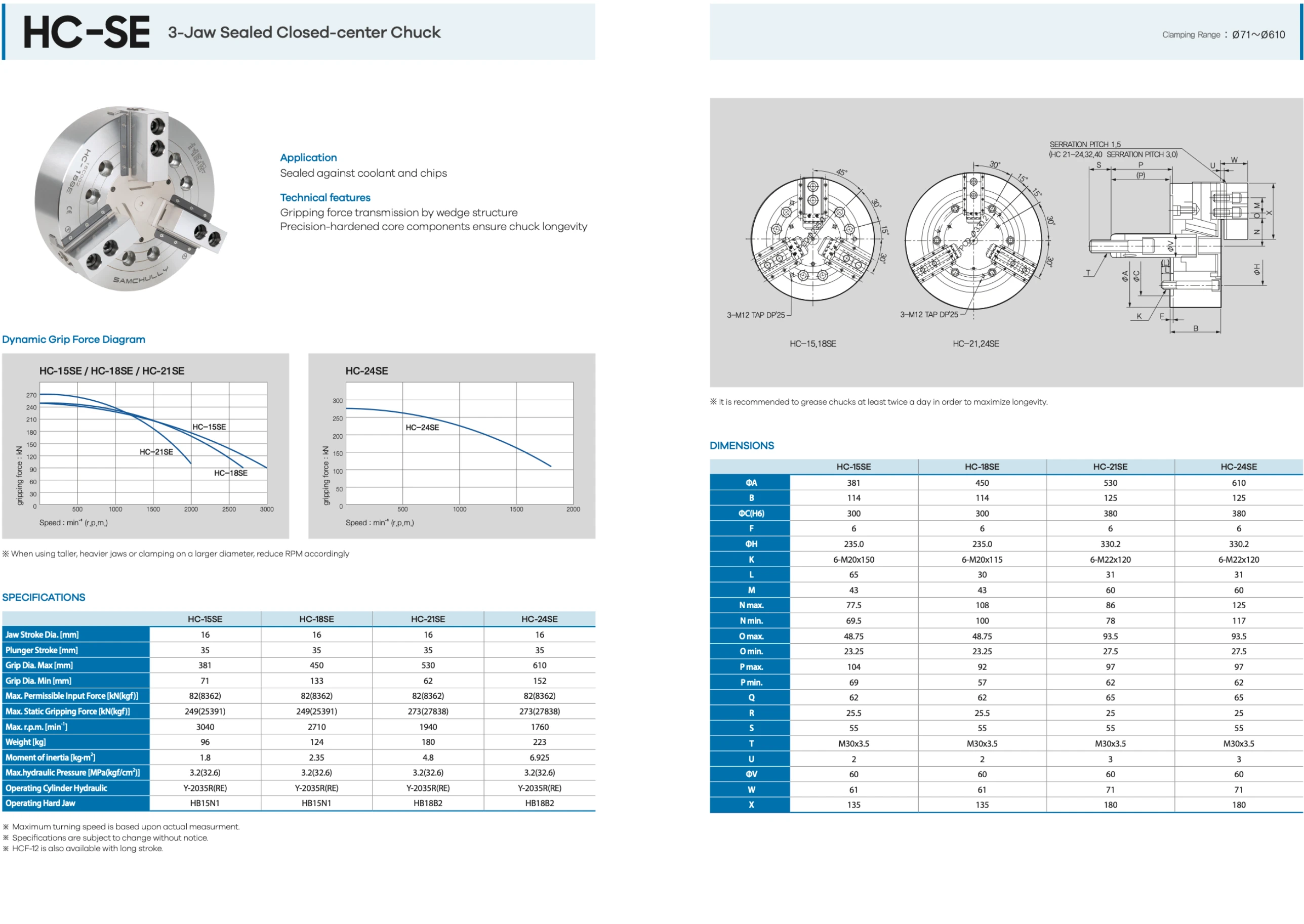 24" HC Series Sealed Power Chuck – 3-Jaw, High-Speed, Closed-Center Power Chuck