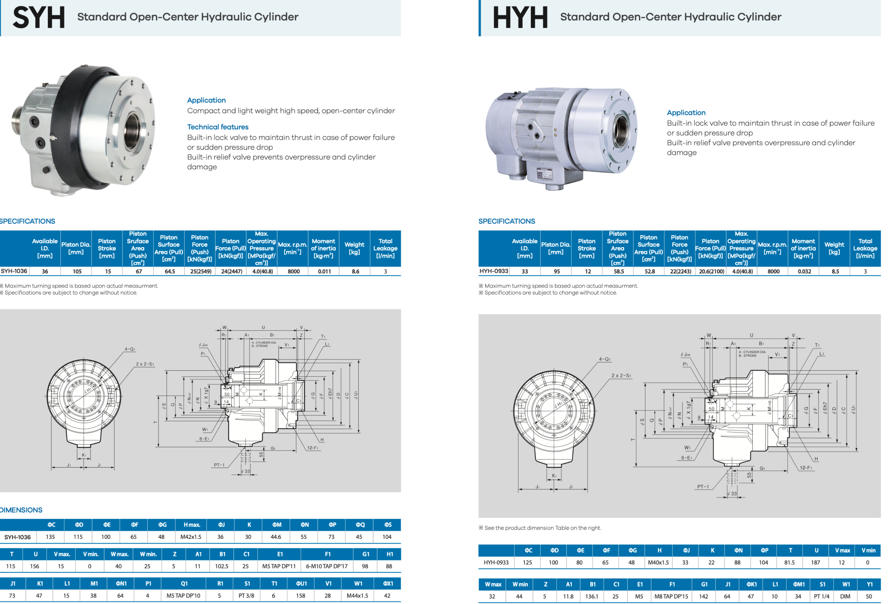 The Samchully HYH Series hydraulic cylinders are designed for CNC lathes and turning centers requiring a compact, high-speed rear-mounting cylinder. The HYH-0933 model delivers reliable power transmission and smooth actuation, making it ideal for general-purpose, precision, and production machining where space efficiency and consistent clamping performance are critical.