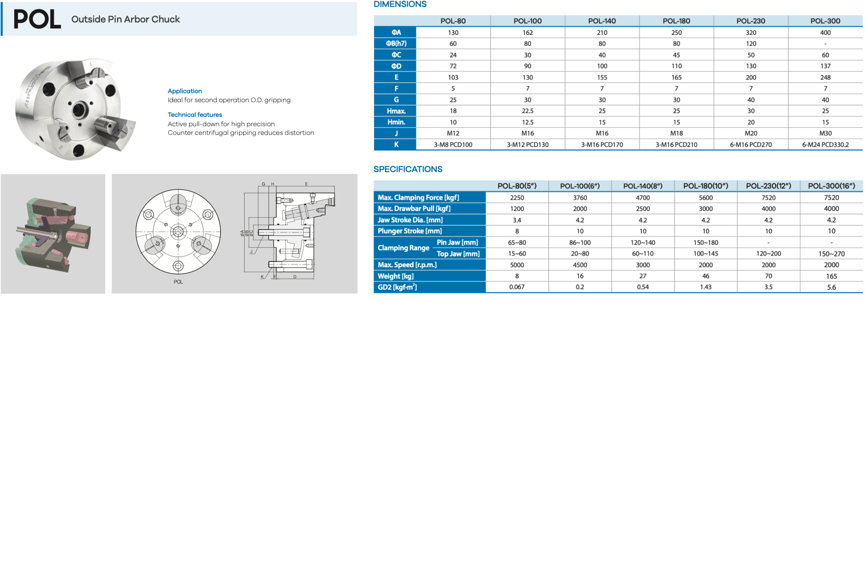 The Samchully POL Outside Pin Arbor Chuck is designed for second-operation O.D. gripping, delivering exceptional precision and stability. Its active pull-down mechanism ensures accurate workpiece positioning, while counter centrifugal gripping minimizes distortion during high-speed machining. Engineered for consistent clamping performance, the POL Series is ideal for applications requiring superior concentricity and repeatability.